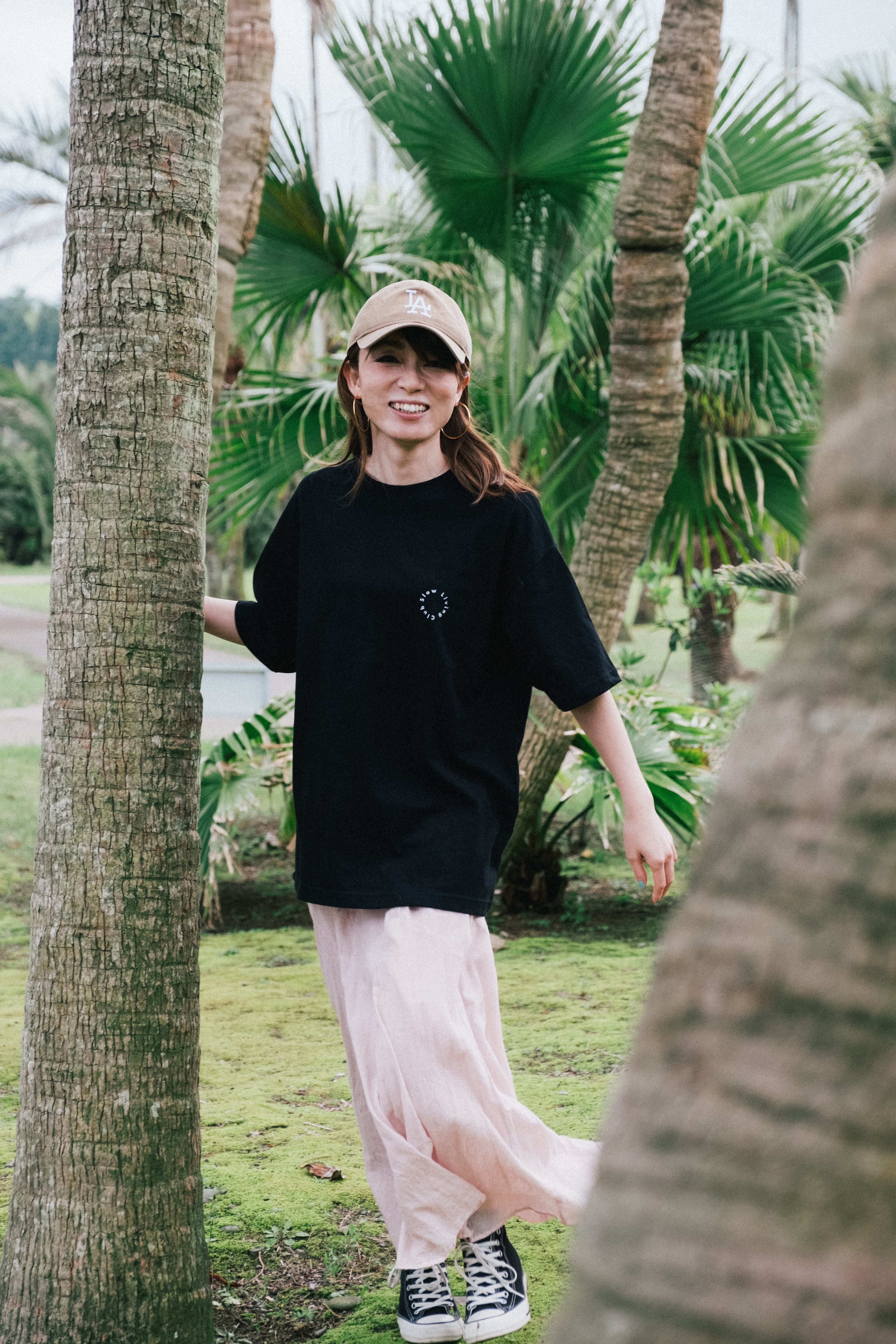 1〜2サイズアップで、ワンピース風にスタイリングされても可愛いです。